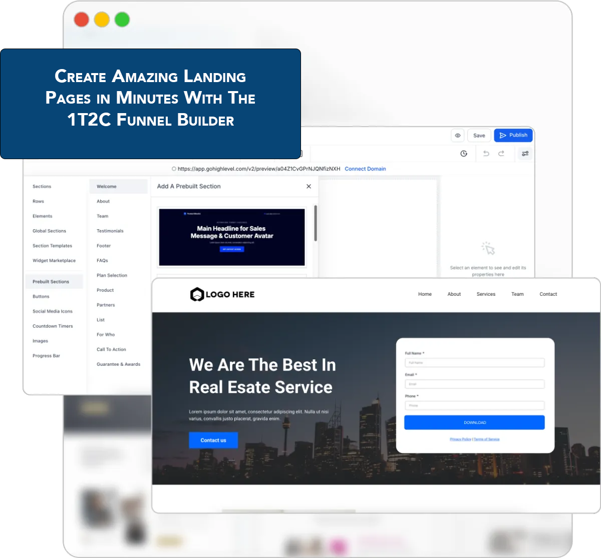 1T2C’s Website Builder offers a simple drag-and-drop interface to create professional, mobile-responsive websites. With built-in templates, SEO tools, and full integration with marketing and CRM systems, it’s designed to launch and scale your online presence seamlessly.