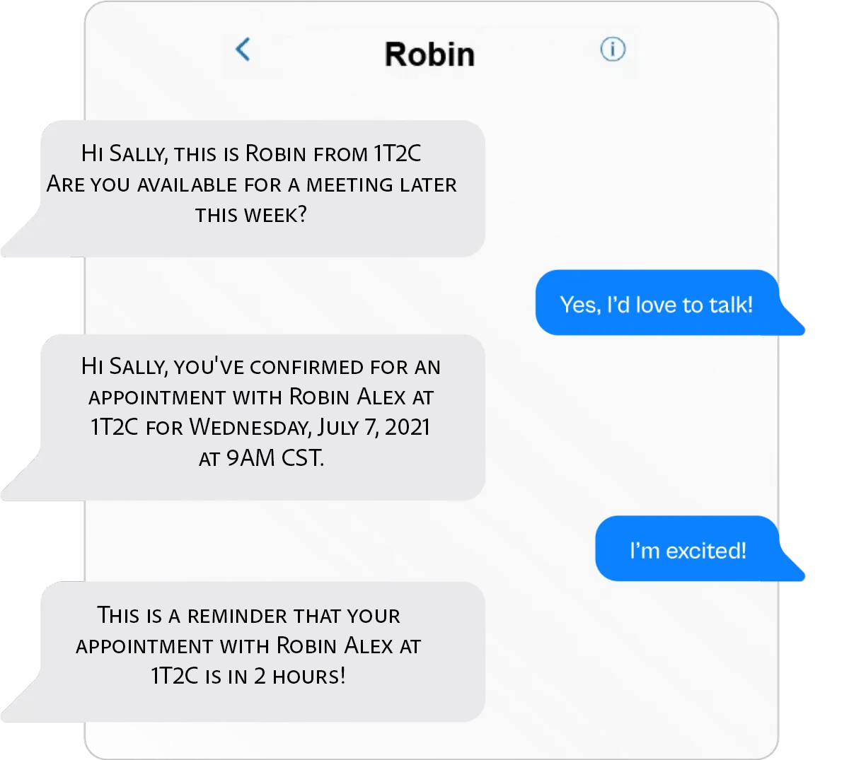 Create text conversations with the goal of placing booked appointments on calendars WITHOUT any human interaction.