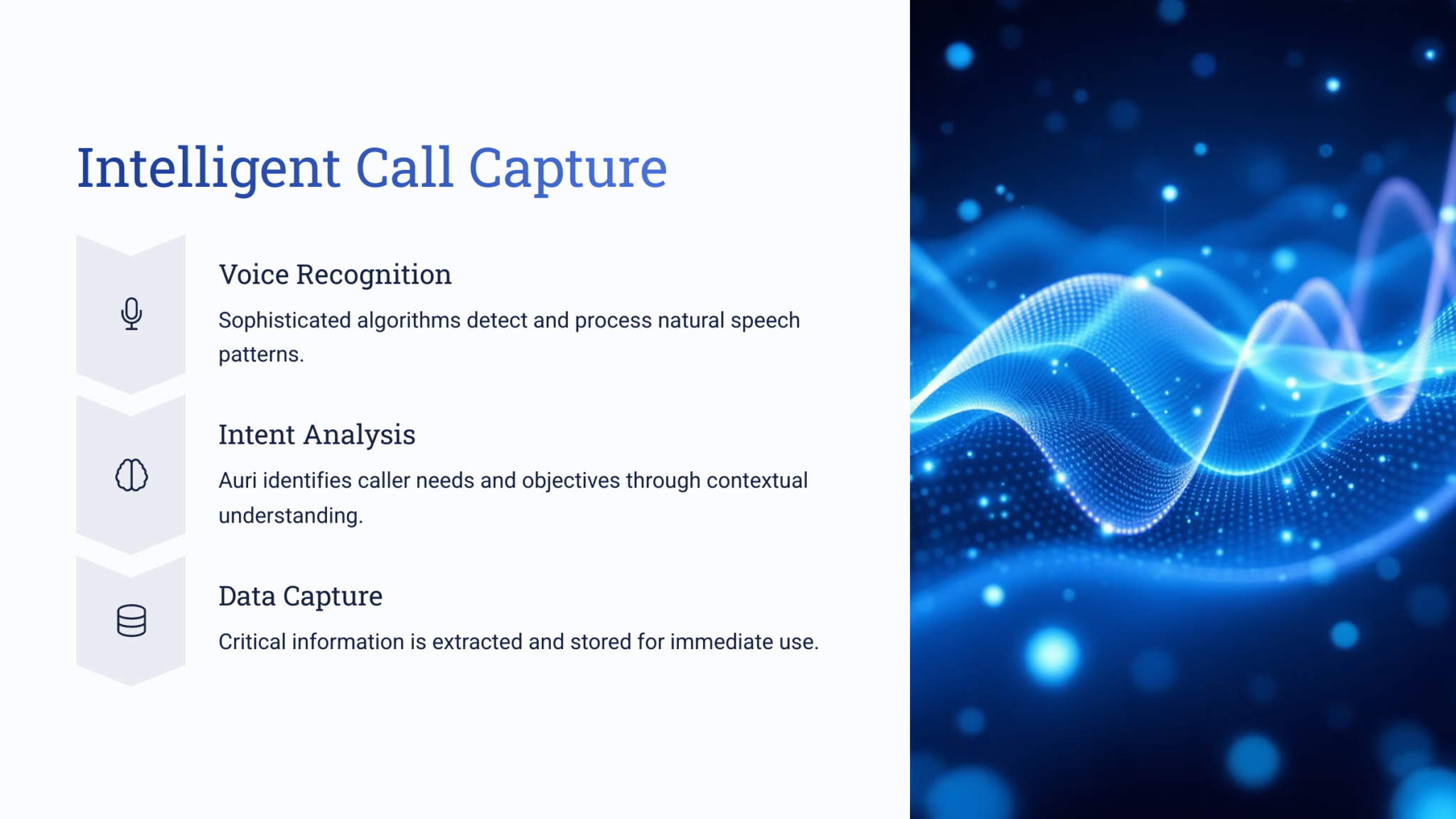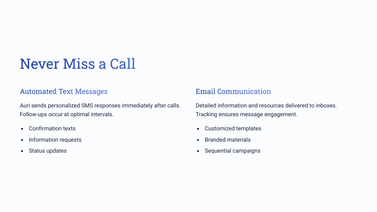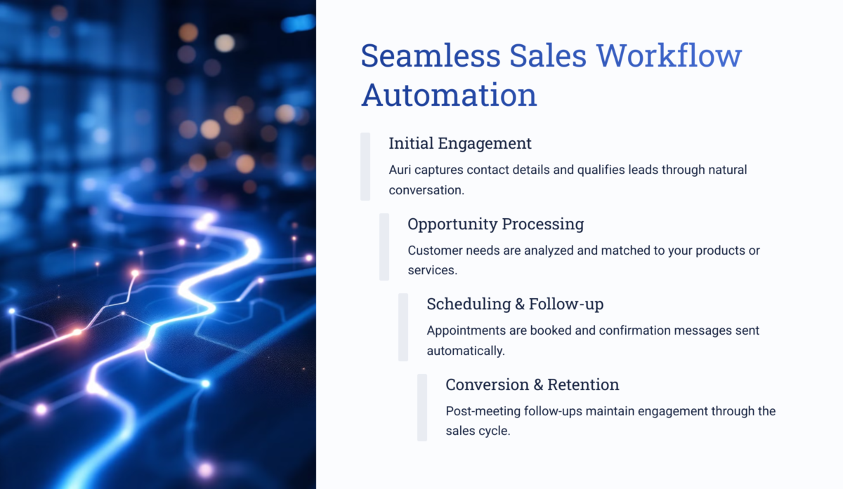 Auri is your 24/7 AI voice companion that never sleeps. She captures every call, analyzes conversations, and drives your sales workflow.